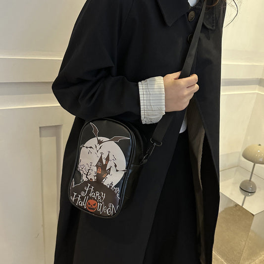 Halloween Cartoon Graffiti Crossbody Bag – Funny Pumpkin Ghost Bat Print Phone Purse for Girls & Women